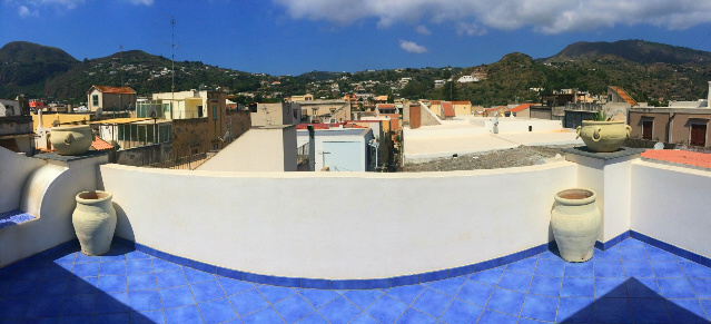 La tipologia Superior caratterizza un appartamento curato nei dettagli con nuovi interni, balcone, terrazzo con colori tipicamente eoliani e mediterranei con vista panoramica sulla parte alta di Lipari. La cucina nel terrazzo è ideale per una cena estiva all'aperto.
